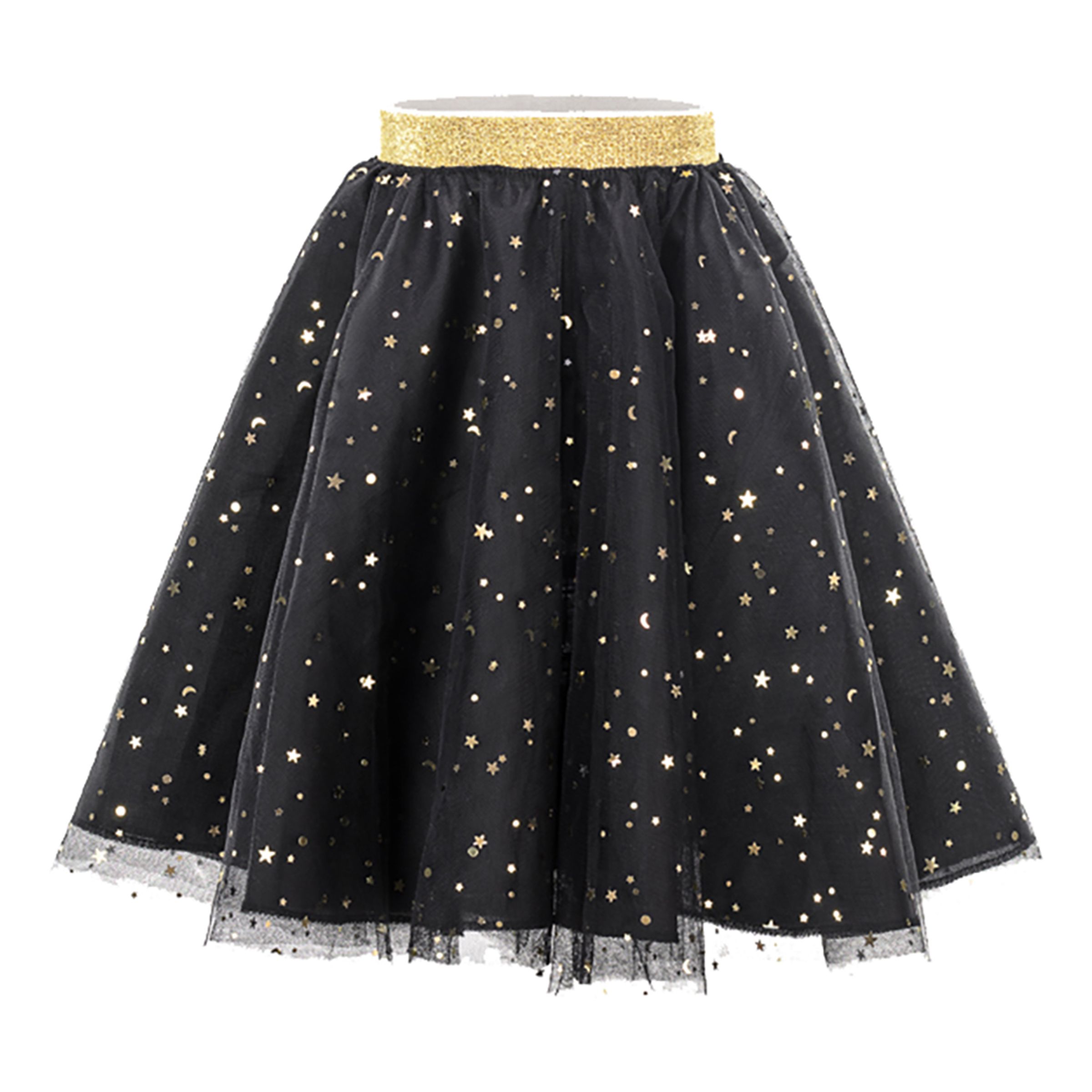 Om det börjar närma sig halloweenfest för barnen, och tankarna går mellan söt och läskig outfit, så är denna häxkjol det perfekta valet. Kjolen är väldigt fin, men också läskig – precis som en häxa skall vara. Kjolen är tillverkad i polyester och är dekorerad med vackra stjärnor och månar i olika färger.