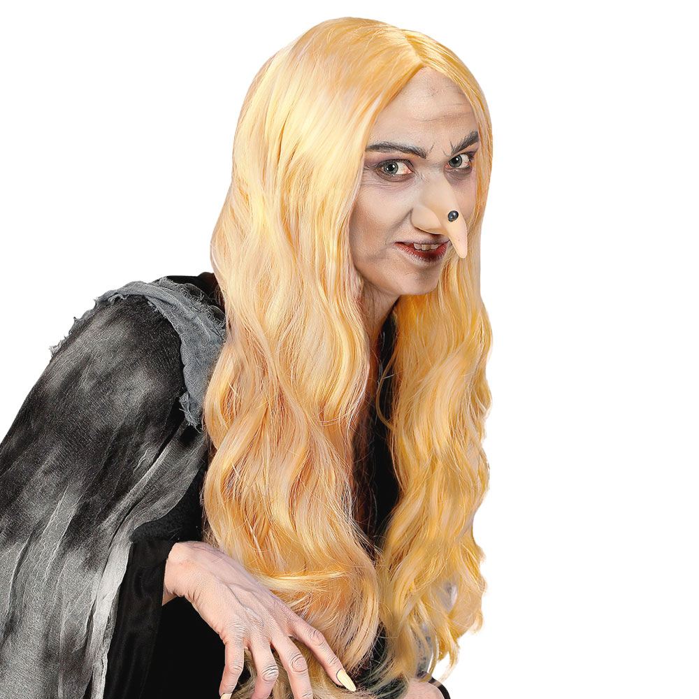 Häxperuk Morgana omfattar en lång, blond häxperuk av polyester. Peruken passar vuxna.