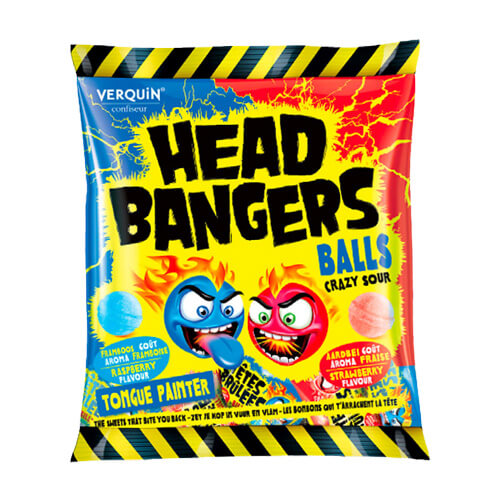 Upplev en explosiv och syrlig smakupplevelse med Head Bangers Balls Crazy Sour Straw/Rasp! Dessa färgglada godisbollar erbjuder en intensiv kombination av surhet och sötma, perfekt för den som älskar en utmaning för smaklökarna. En rolig och spännande godbit som garanterat kommer att väcka din nyfikenhet!