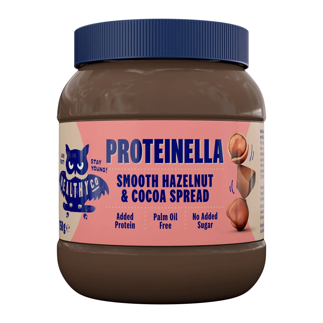 HealthyCo hasselnötskräm med kakao, vassleprotein och sötningsmedel. Proteinella är storfavoriten i deras sortiment som finns i flera olika smaker. Utan tillsatt socker och utan palmolja så är den ett hälsosammare, men lika smakrikt, alternativ till traditionell nötcrème. Ha den på smörgåsen, i gröten, till bakning eller som ett snacks.