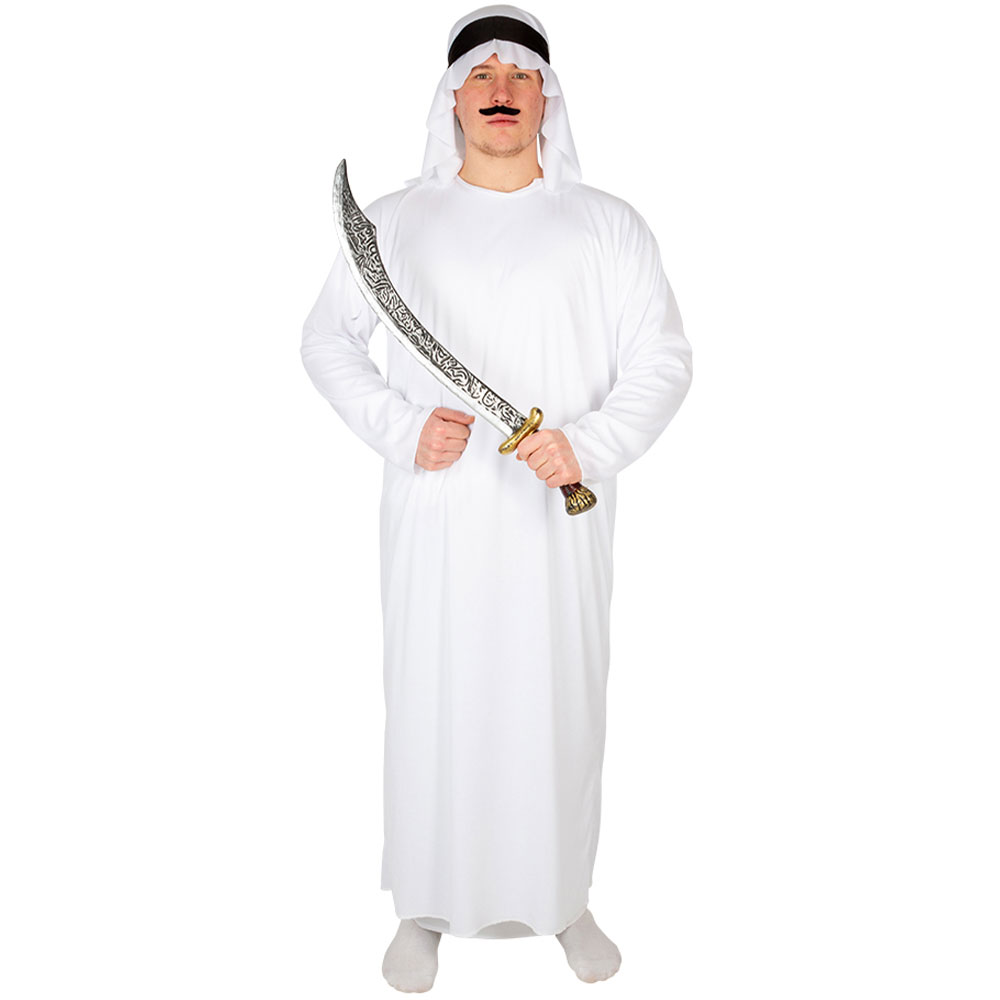 På en spännande halloween maskerad kan en vit dräkt förvandla vem som helst till en mystisk herde. Den kompletta looken, med en sofistikerad huvudbonad, skapar en suggestiv atmosfär som fångar allas uppmärksamhet.