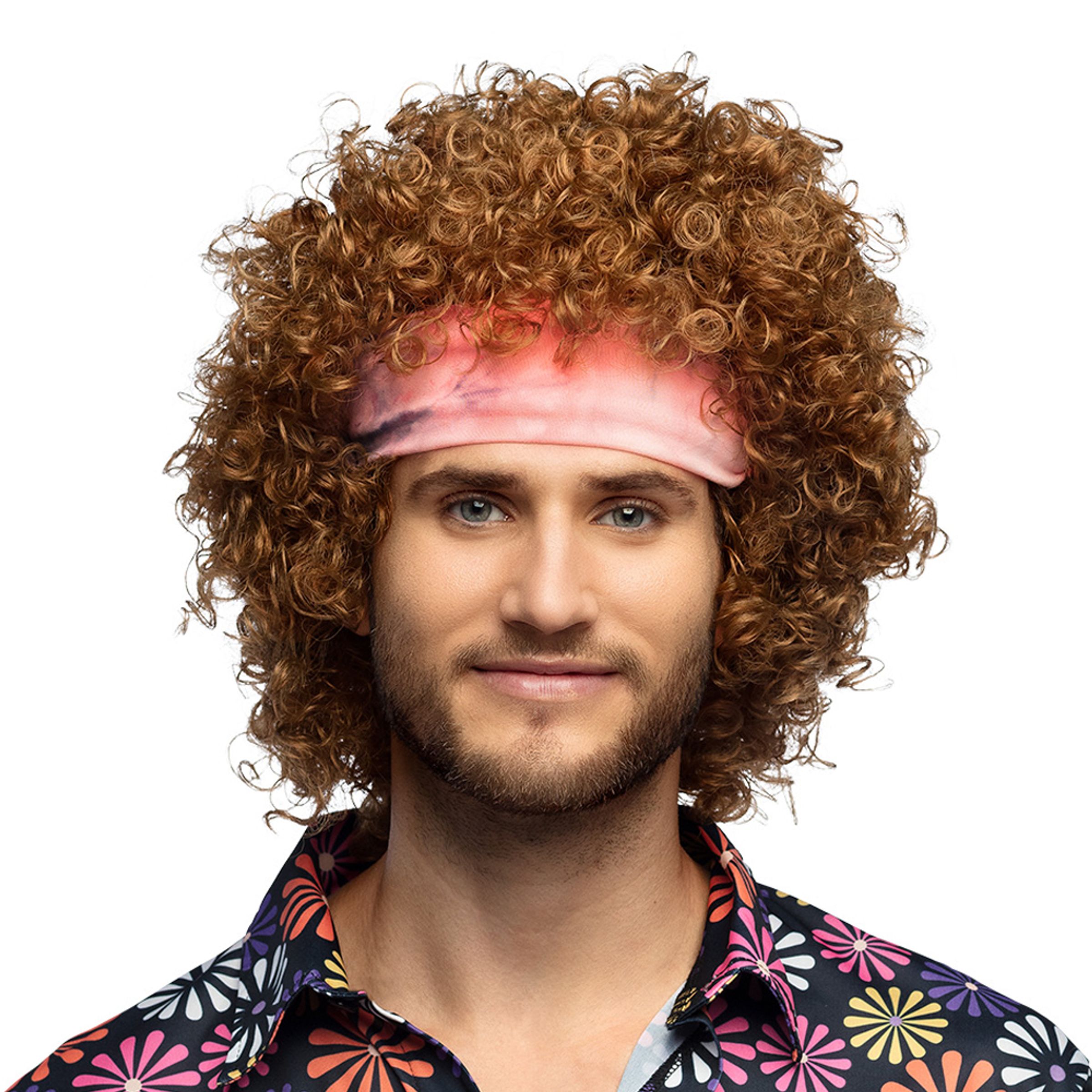 Hippie Peruk med Pannband är en ljusbrun, lockig peruk med rosa pannband. Perfekt för dig som vill leva dig in i rollen som 60-talets hippie. Komplettera med mockaväst och runda brillor för maximal look!