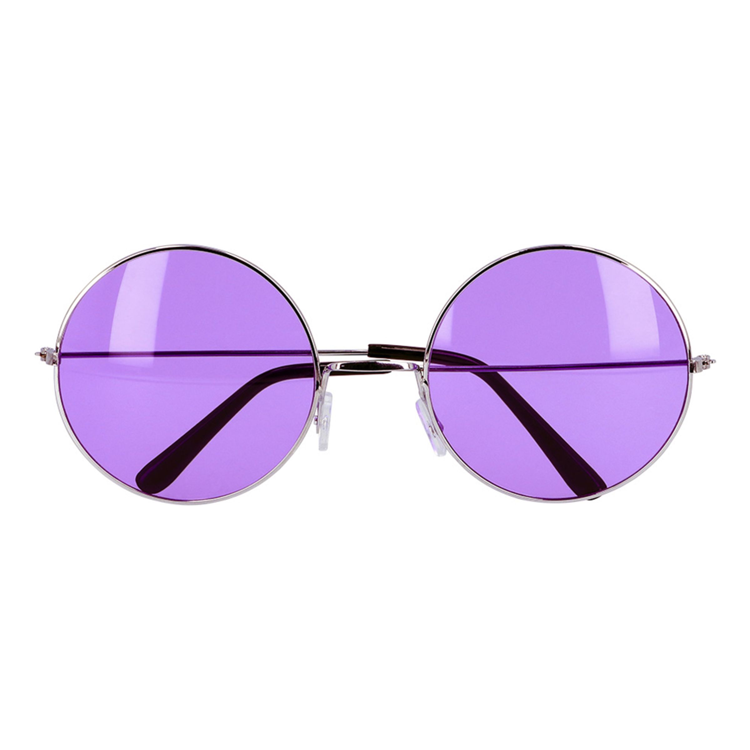 Hippieglasögon Stora Lila är ett par oversized glasögon med stora runda glas i en fräsch lila färg. Ett måste-ha-tillbehör för 60- och 70-talsfesten!