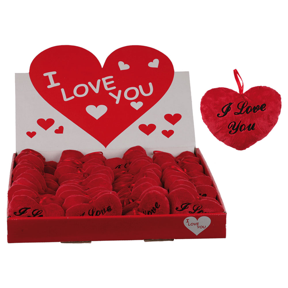 Hjärta I Love You Plysch Röd innehåller ett litet rött hjärta med svart "I Love You" text på samt en liten röd ögla upptill. Tillverkad av 100% polyester.