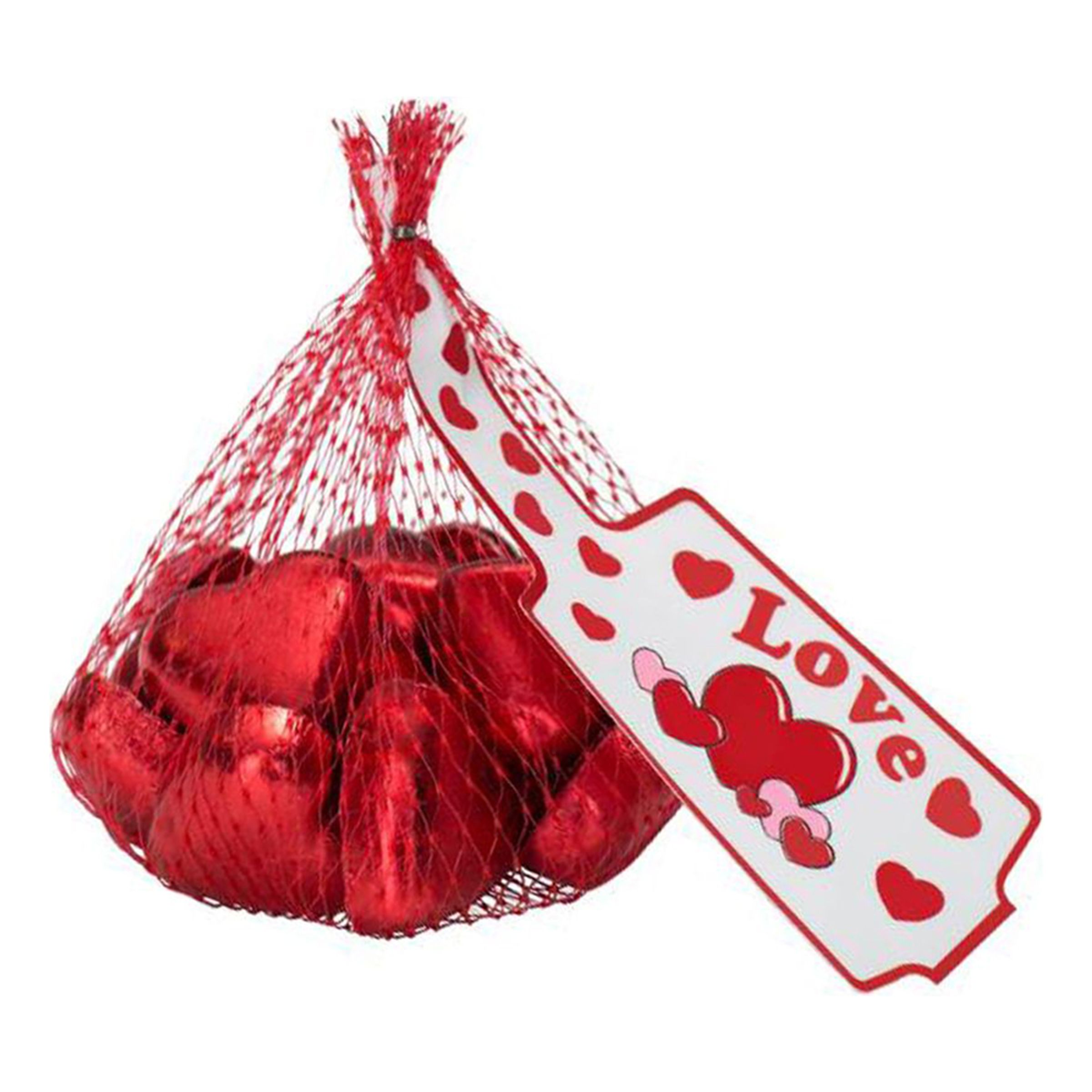 Hjärtan i Nät innehåller chokladhjärtan i rött papper. Kommer i nät om 90 gram.