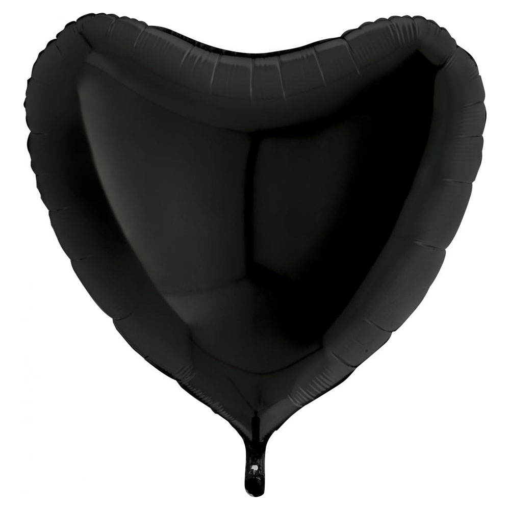 Hjärtballong Folie Svart innehåller en svart hjärtformad ballong som kan fyllas med luft eller helium. Tillverkad av folie.