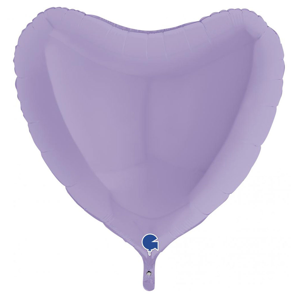 Hjärtballong Matt Pastell Lila 91 cm består av en pastell lila hjärtballong av folie. Blås upp ballongen med luft eller helium.