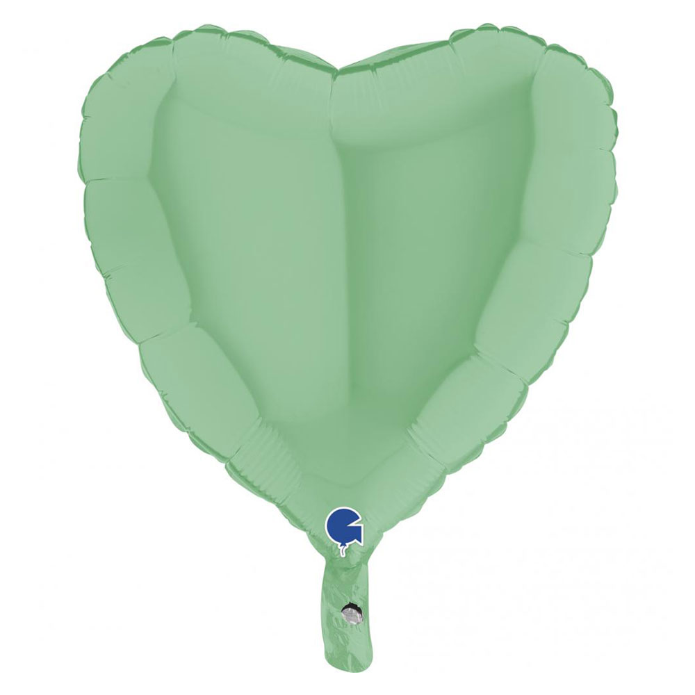 Hjärtballong Matt Pastellgrön 46 cm består av en matt pastellgrön ballong i form av ett hjärta. Denna ballong kan fyllas upp med luft eller helium. Tillverkad i folie.