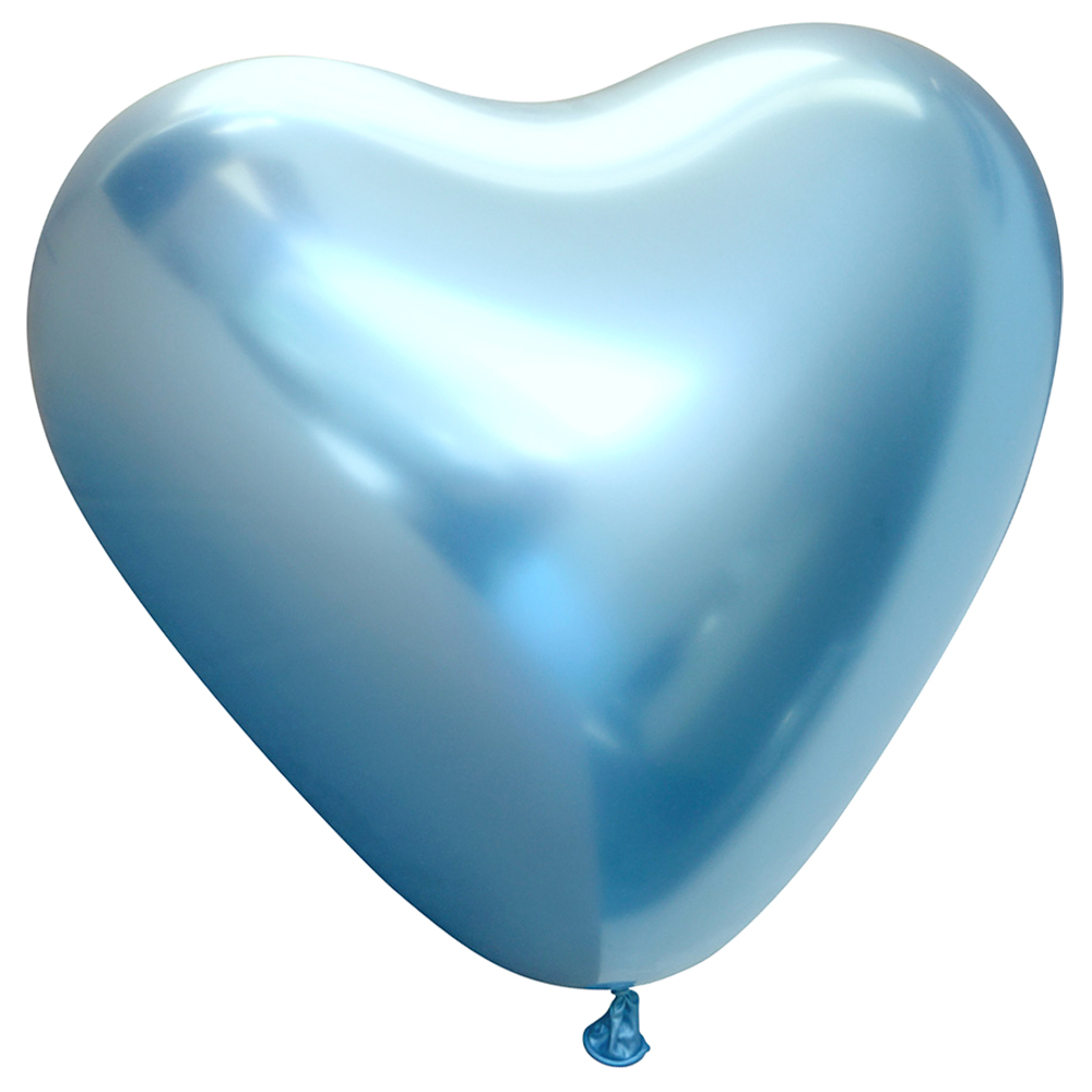 Hjärtballonger Chrome Blå omfattar hjärtformade latexballonger i chrome blått som blir ca 30 cm stora. Ballongerna är biologiskt nedbrytbara och fylls med luft eller helium.