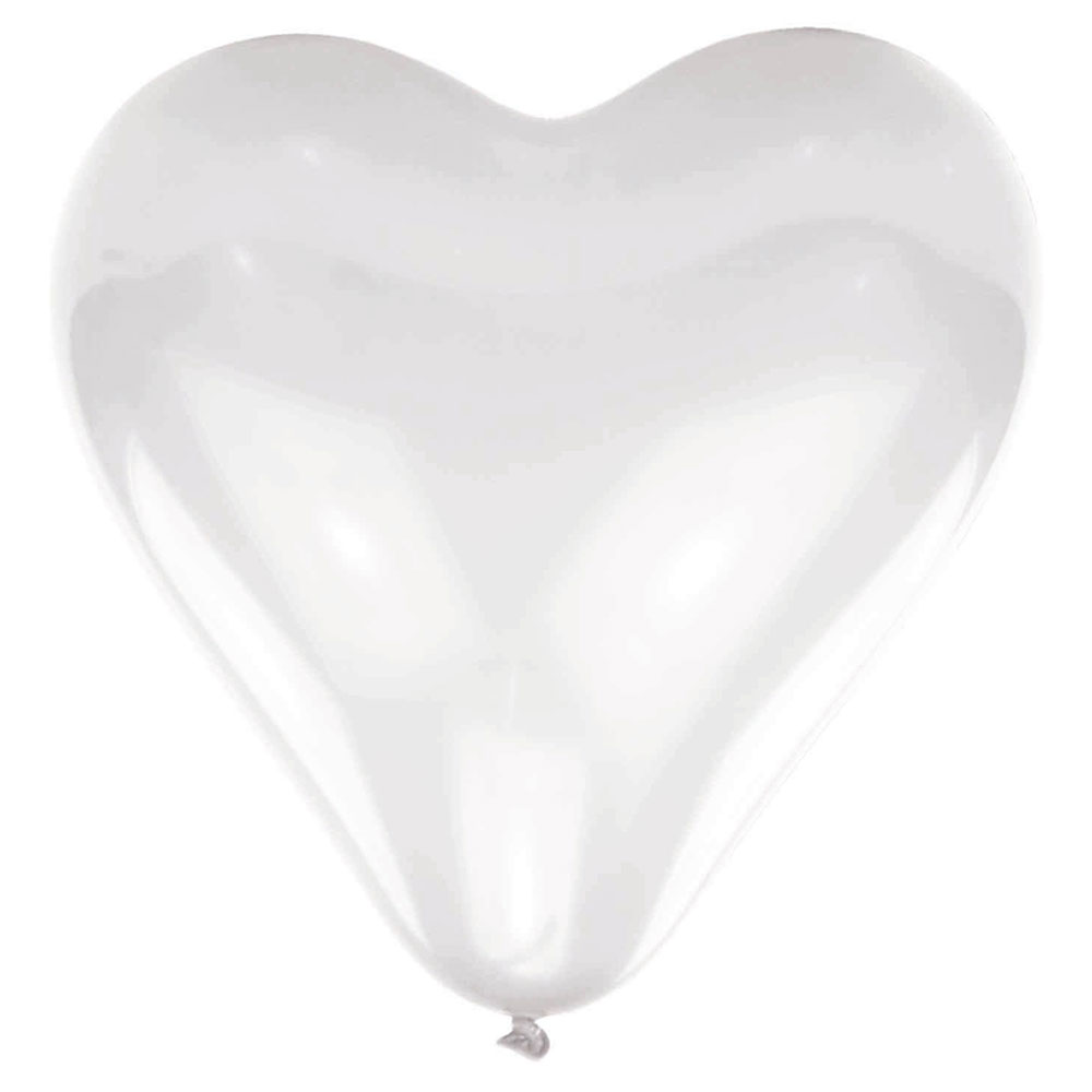 Hjärtformade Latexballonger Vit omfattar ett 10-pack vita hjärtballonger av latex. Ballongerna fylls med luft eller helium och blir ca 40,6 cm stora.