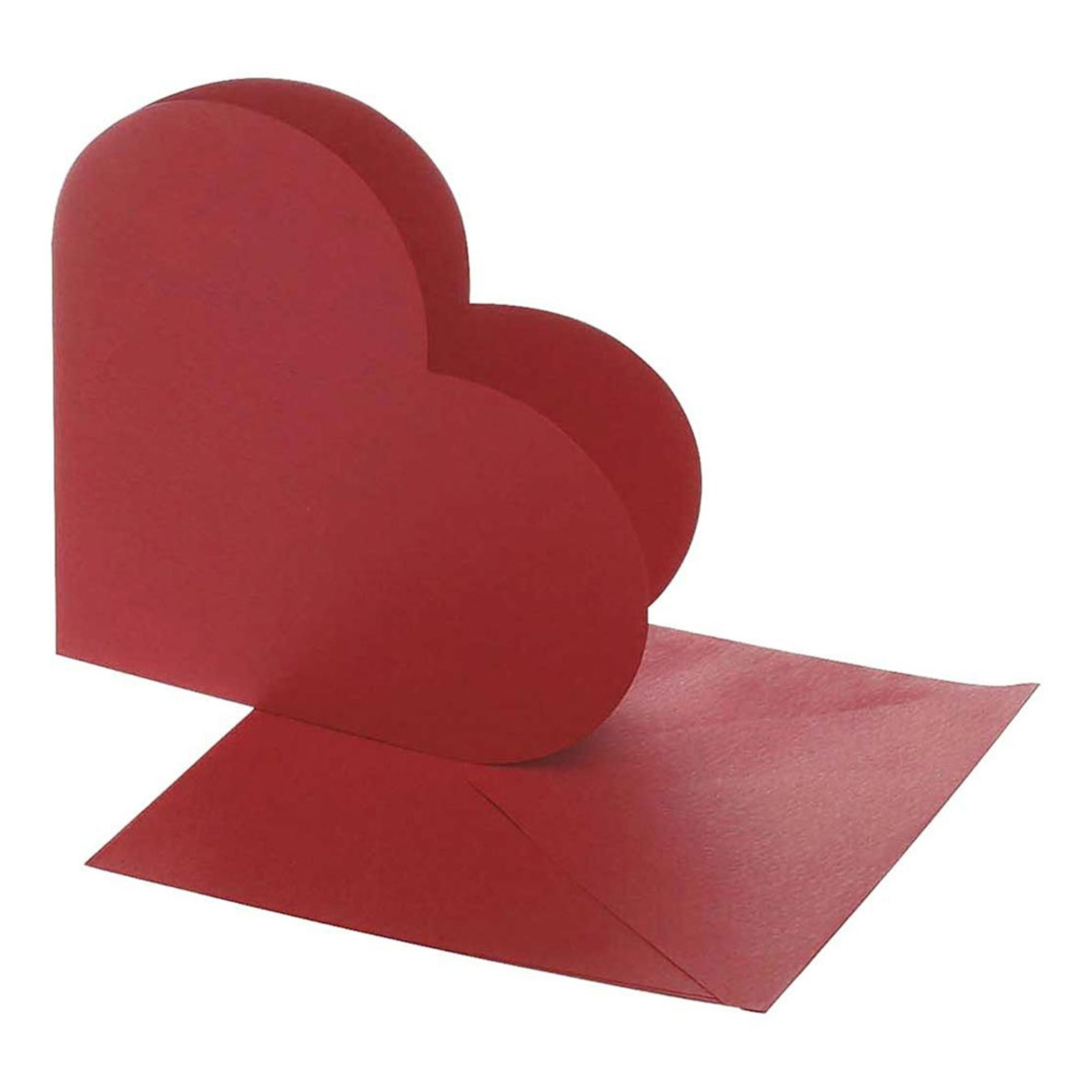 Hjärtkort med Kuvert innehåller tio röda hjärtformade kort med tio röda kuvert. Korten är dubbelvikta och är 12,5 x 12,5 cm. Kuverten är 13,5 x 13,5 cm.