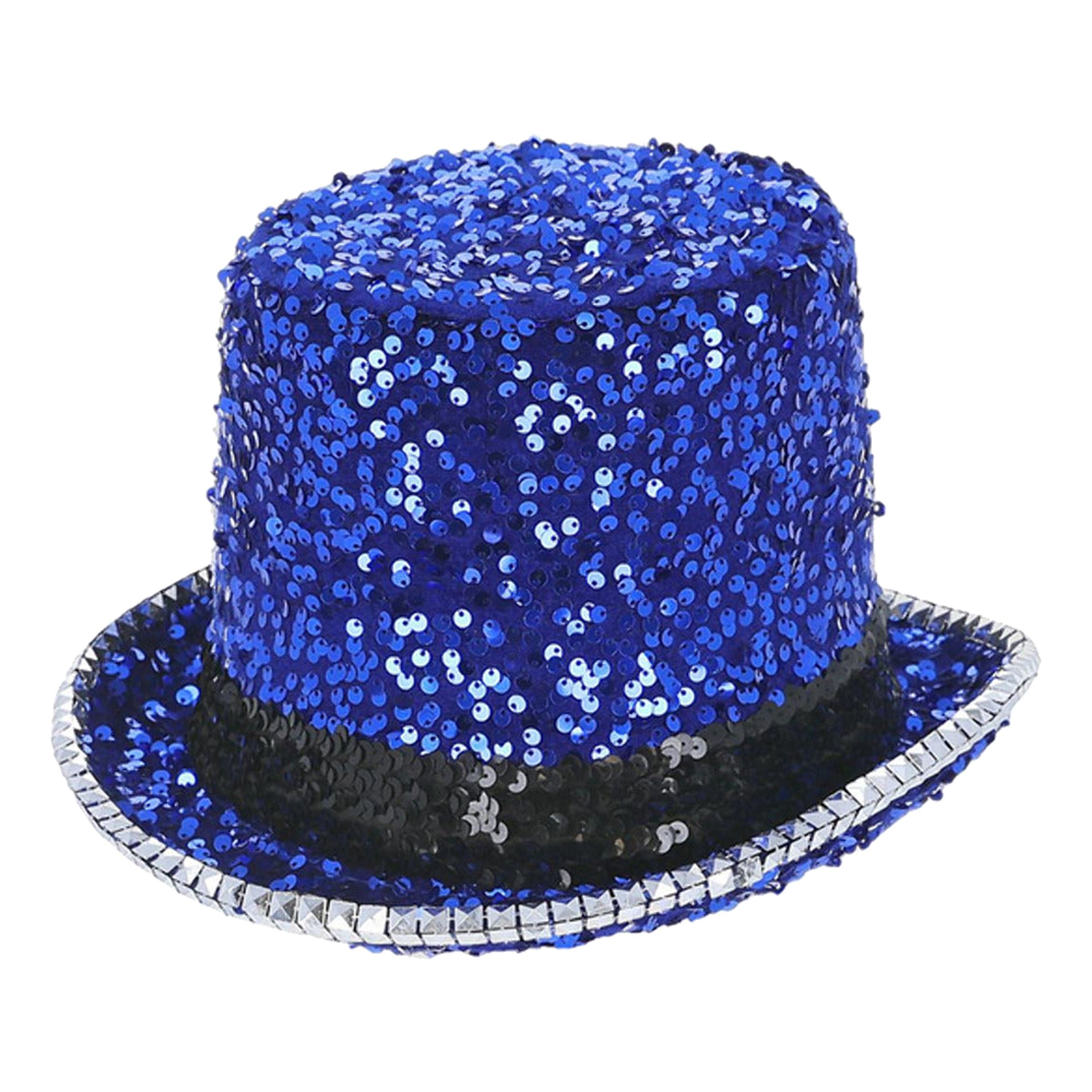 Höghatt med Paljetter Blå kommer i storleken one size (för vuxna) och är tillverkad av polyester och plast. En ståtlig hatt att bära med stolthet under lite glittrigare tillställningar.