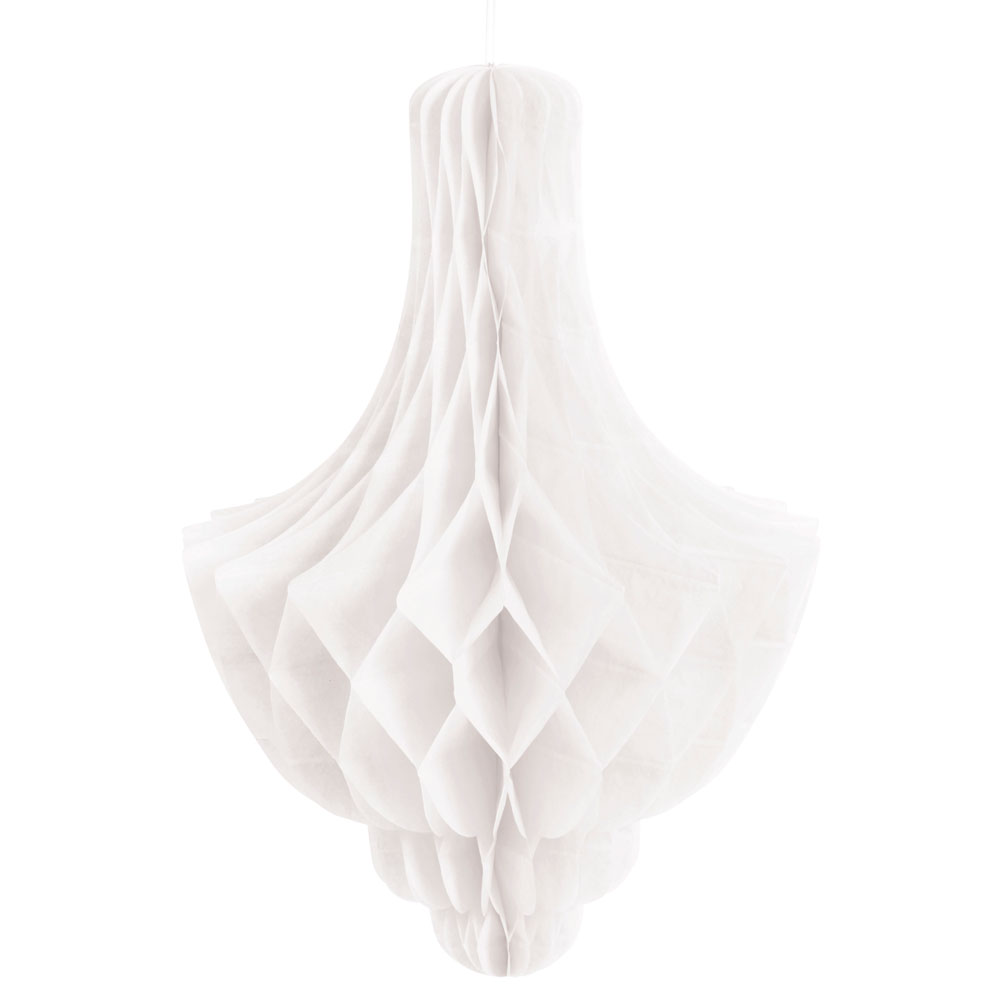 Gör det riktigt fint med en fest dekoration i vitt! Häng upp en eller flera super tjusiga chandelier honeycombs på din fest för ett riktigt fint och inbjudande intryck. Dessa honeycombs i papper är en utmärkt hängande dekoration som både är ett riktigt effektfullt fest pynt och är även super enkel att dekorera flera olika fester med.