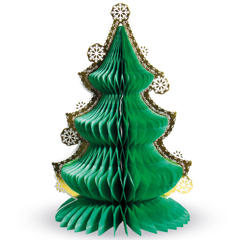 Honeycomb Julgran består av en grön honeycomb i julgrans-form med snygg kant i guld och vitt. Vik enkelt ut honeycomben till sin fulla julgrans form och låt stå snyggt på exempelvis julbordet. Ingår även vita gem.