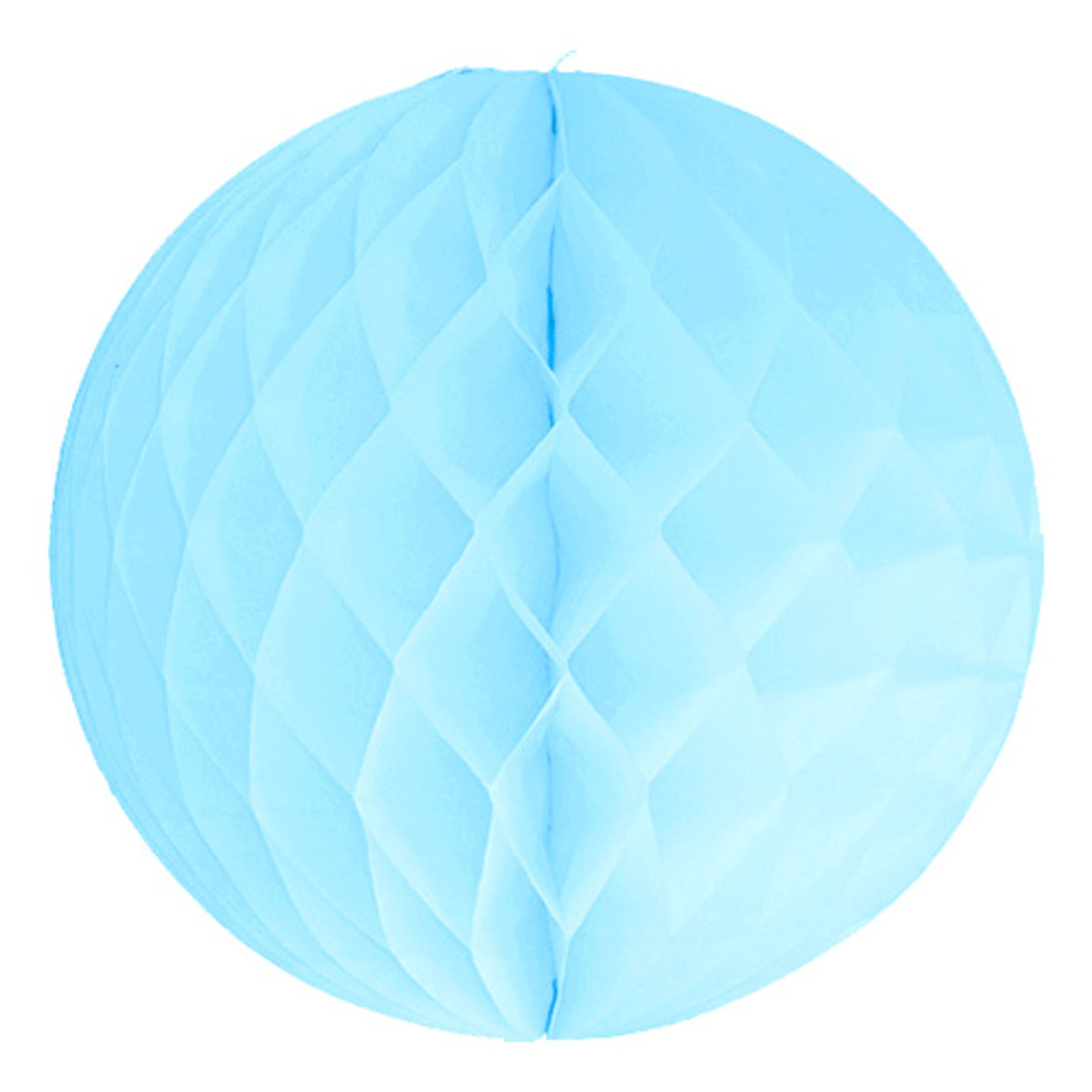 Honeycomb Ljusblå är tillverkad av papper. Tråd för upphängning medföljer.