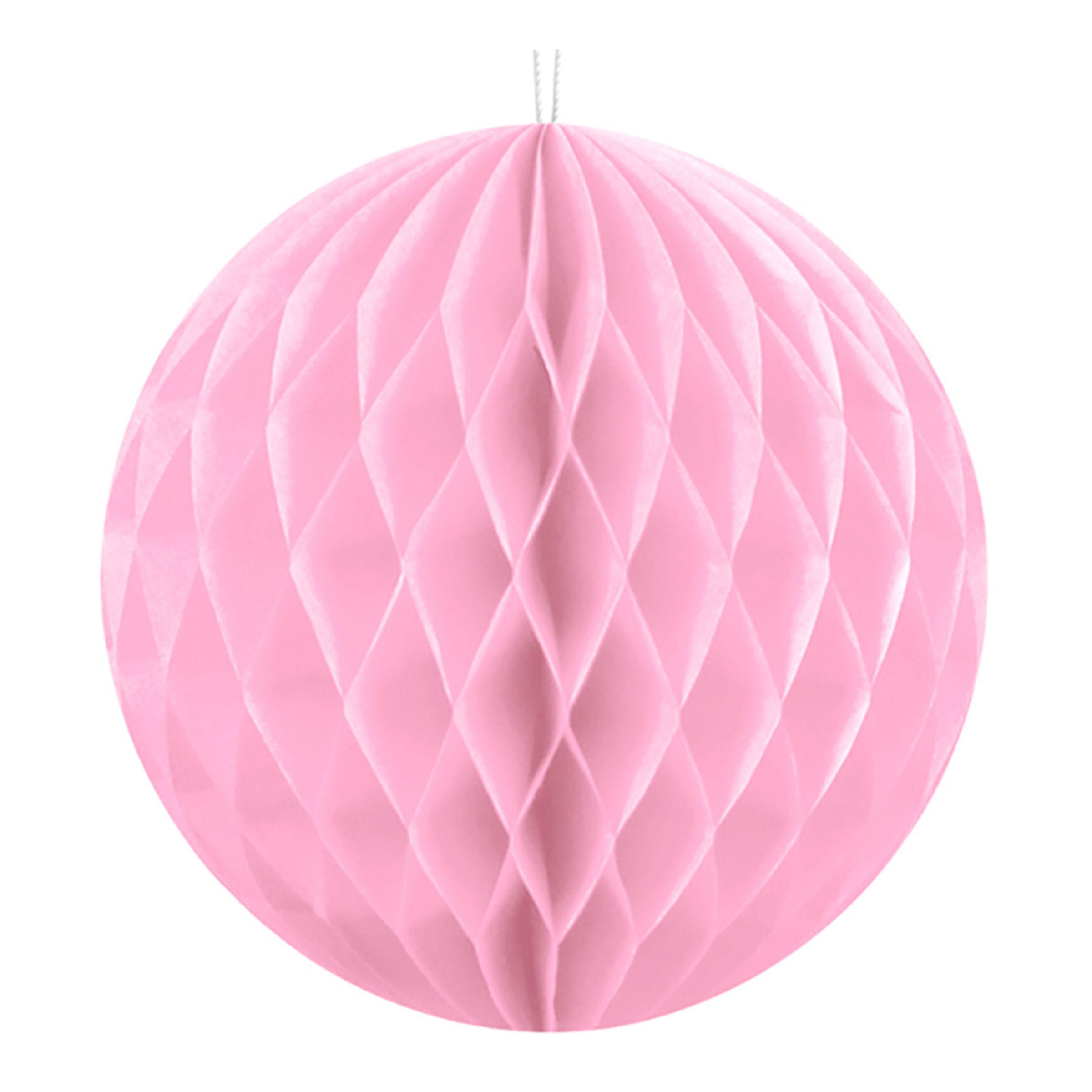 Honeycomb Ljusrosa finns i fyra olika varianter: 10, 20, 30 och 40 cm i färgen ljusrosa. De är tillverkade av papper och hängs enkelt upp i taket med hjälp av snören och tejp. Säljs i 1-pack.