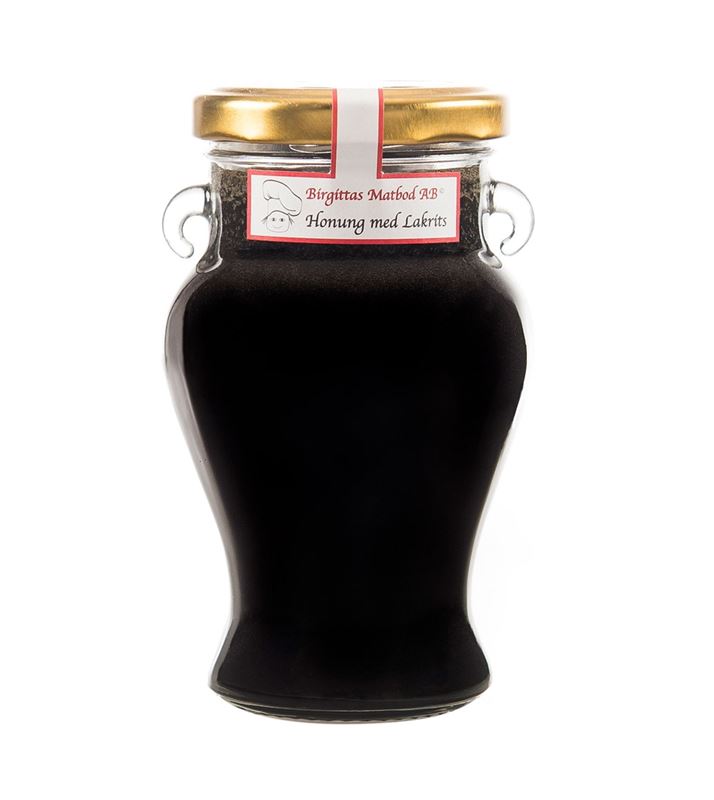 Honung med lakrits är smaksatt med lakritspulver. Denna honung kan du med fördel värma lite och sedan ringla över glass eller färsk frukt.
