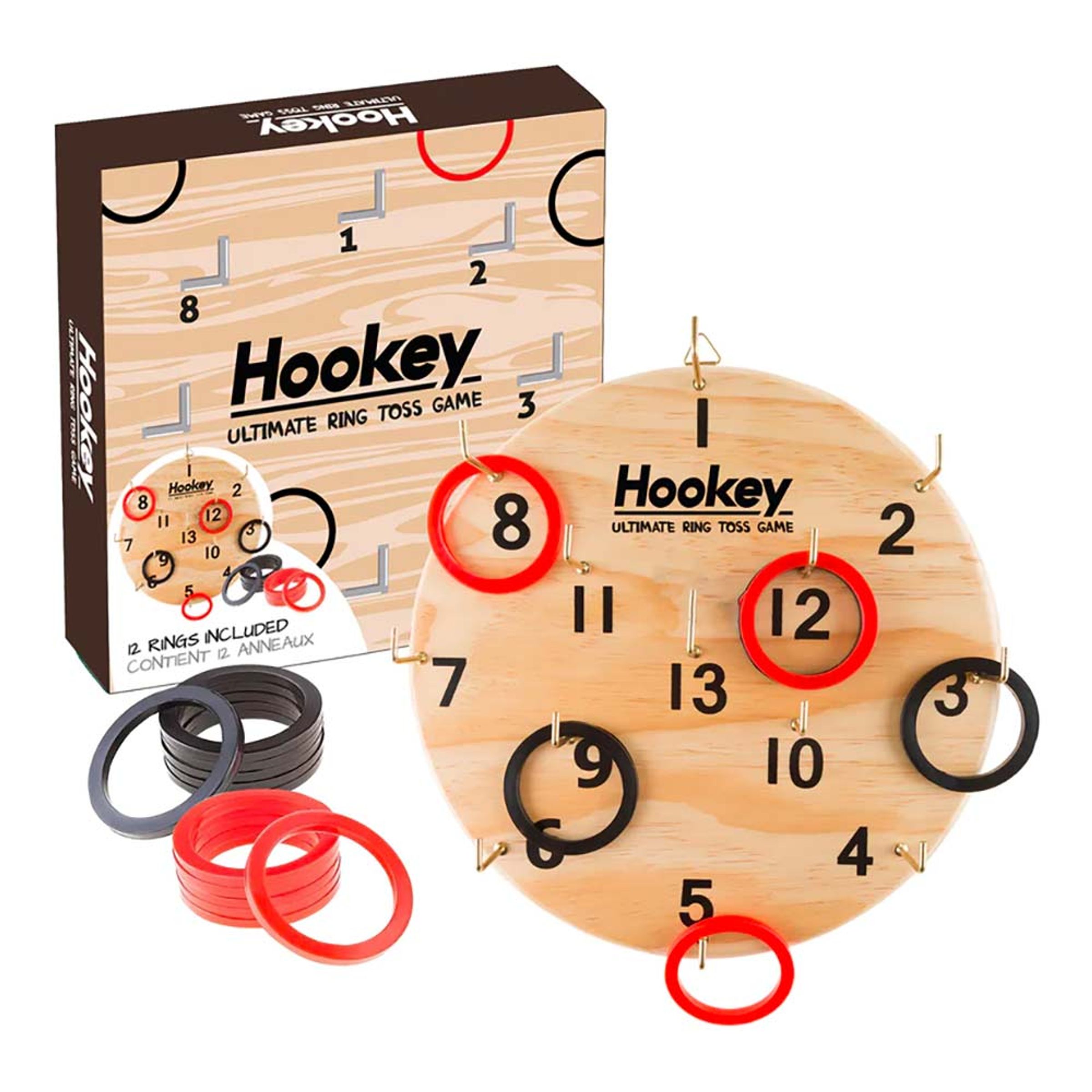 Hookey Ring Toss Spel är ett roligt spel där du ska kasta ringar på numrerade krokar. Ett simpelt spel som liknar darts. Fungerar lika bra att spela inomhus som utomhus! Häng upp den på väggen med hjälp av fästet på ovansidan.