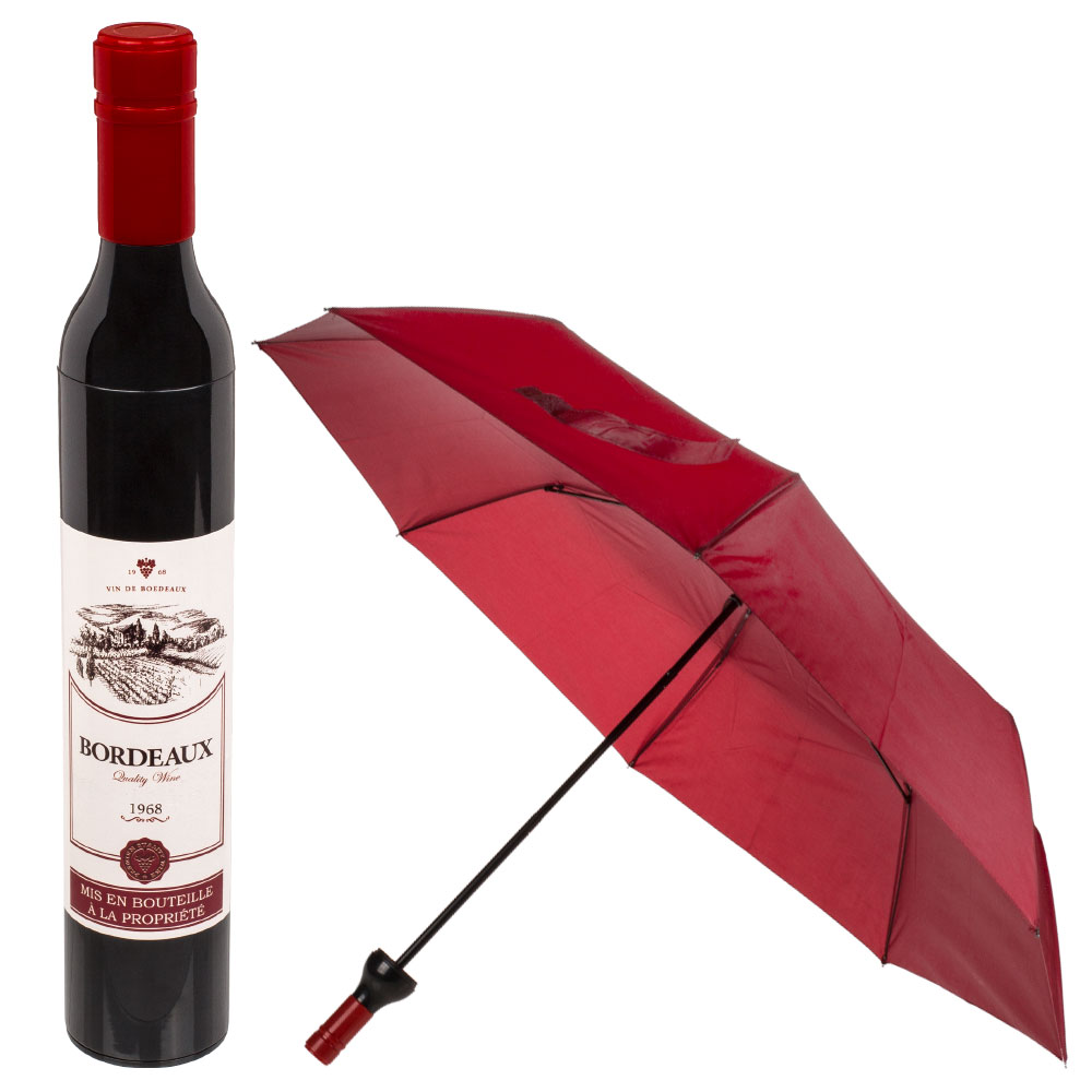 En flaska vin är en vanlig och oftast mycket uppskattad gå-bort-present, men vill du hellre ge bort något lite roligare och annorlunda så passar den här bättre! Den här vinflaskan är nämligen ingen vanlig vinflaska, det är i själva verket ett hopfällbart paraply med fodral som ser ut som en vinflaska. En humoristiskt paraply-vinflaska som definitivt kommer att liva upp stämningen i alla gråa väder. Den här paraply-vinflaskan blir alltså en riktigt skojig present till både en vinälskare och till den som ofta är ute i regnet.