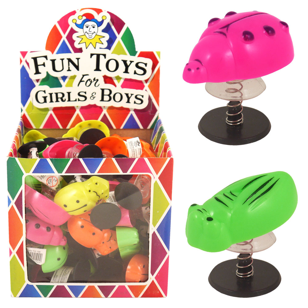 En hoppande insekt är en rolig pop-up leksak som tar ett rejält hopp när du trycker ner sugproppen ordenligt och sedan släpper. En pop up insekt med sugpropp är en perfekt kalasleksak att lägga i fiskedammens godispåsar.