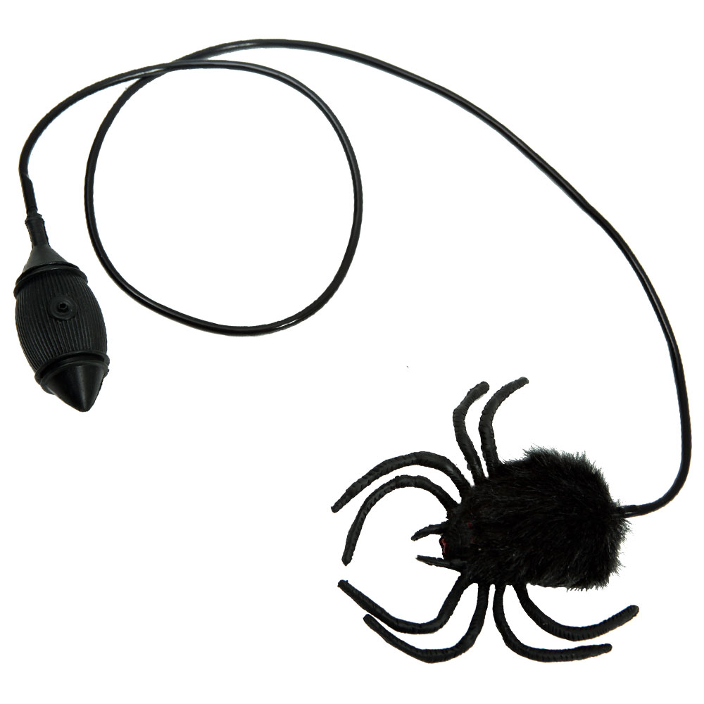 Hoppande Spindel består av en svart spindel med en liten pump. När du trycker på pumpen hoppar spindeln iväg.