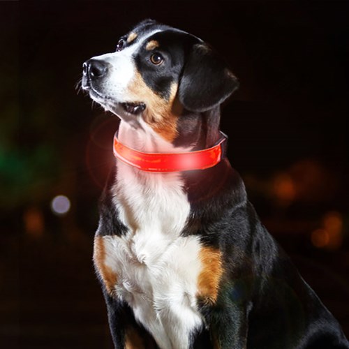 Detta smarta LED-halsband håller din fyrbenta vän synlig i mörker och skymning. Hundhalsbandet kan lysa eller blinka och ser till att din hund syns av såväl dig som av andra fotgängare och trafikanter i mörkret. Ett smart och tryggt tillbehör som kan ge dig och din hund säkra promenader under de korta dagarna på vinterhalvåret, samt mörka morgon- och kvällspromenader!