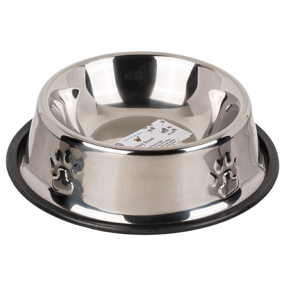 Här har människans bästa vän en stilren skål i rostfri stål med tassavtryck för mat eller vatten som passar i de allra flesta hem, bara fyll skålen med önskat innehåll så kommer din hund bli nöjd.