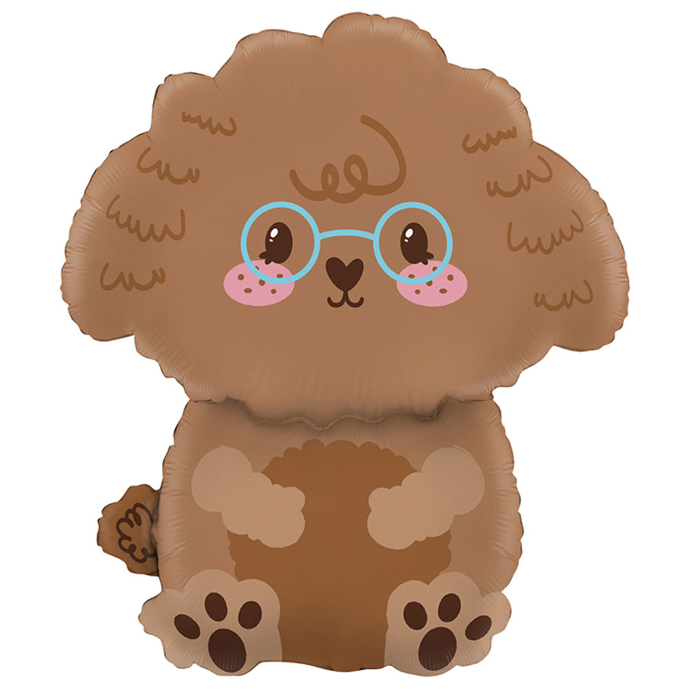Hundvalp Folieballong består av en folieballong i form av en söt hundvalp i brun färg med ett par blåa glasögon på. Ballongen fylls med luft eller helium.
