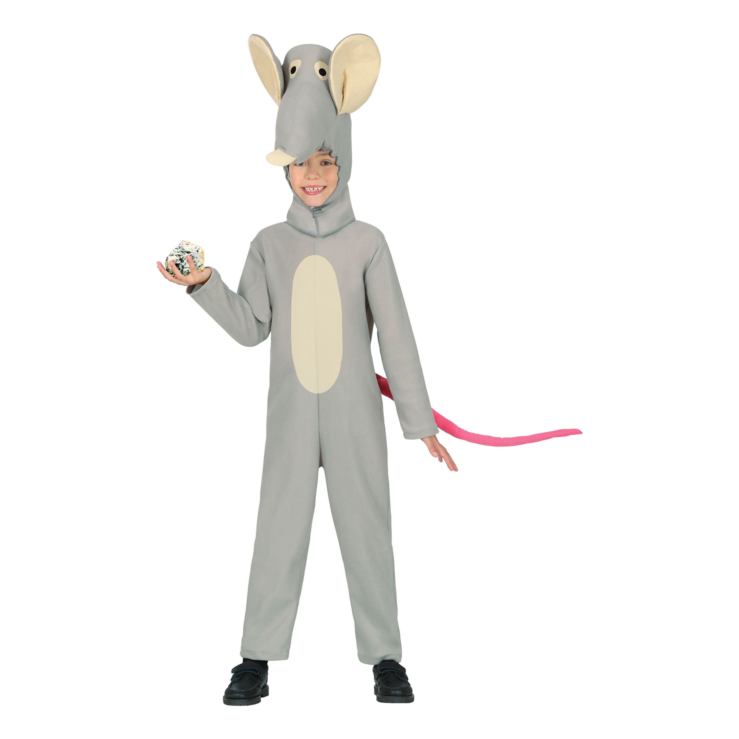 Hungrig Mus Barn Maskeraddräkt består av en grå jumpsuit med en lång, rosa svans, samt en huva som förvandlar ditt barn till en söt mus eller råtta. Observera att ost ej medföljer.