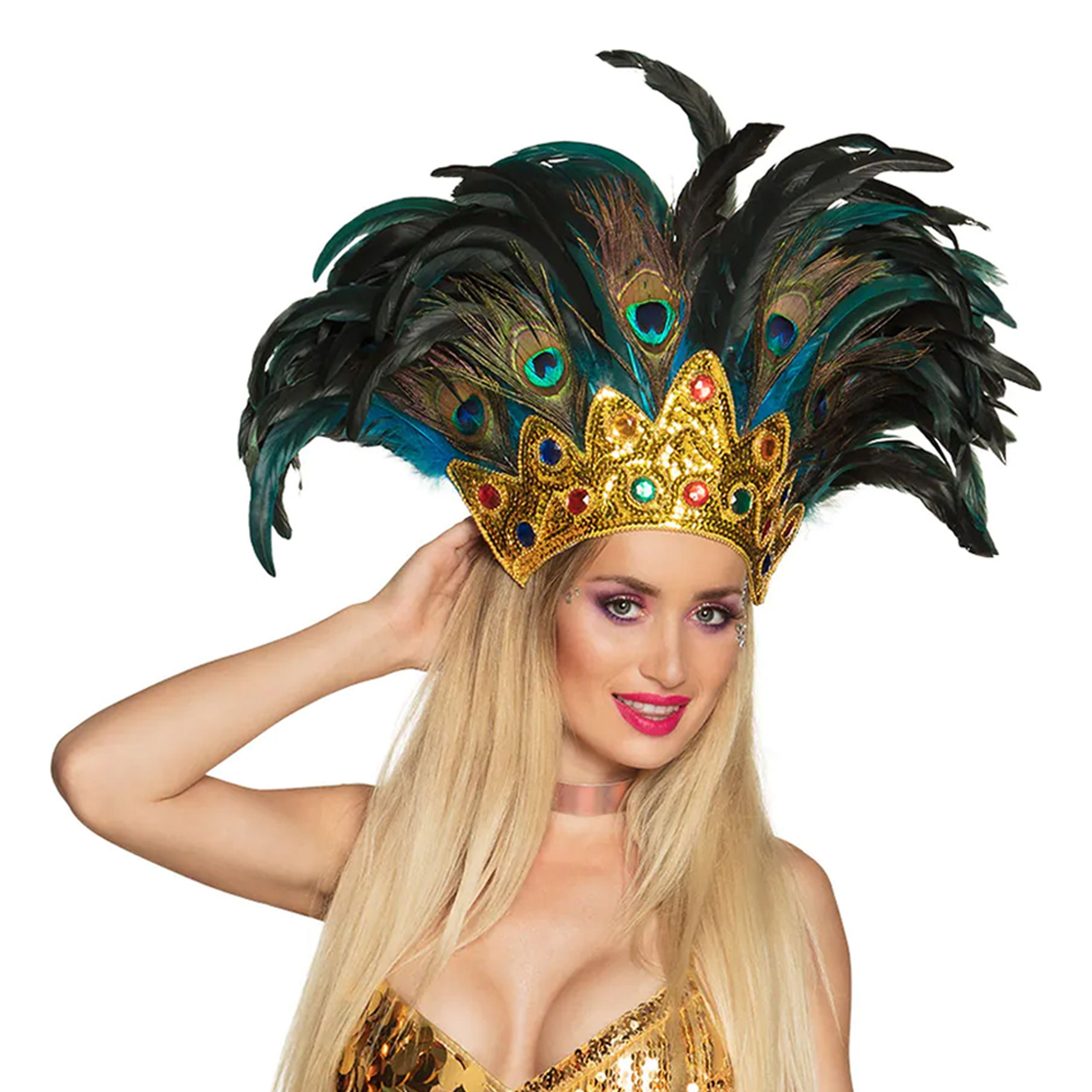 Bli festen drottning med denna ståtlighet på huvudet. Precis som påfågeln så kommer din skönhet ta alla med storm och du kommer omges av beundran för din magnifika utstyrsel. Den ultimata huvudbonaden för den som inte är rädd för att stå i centrum!
