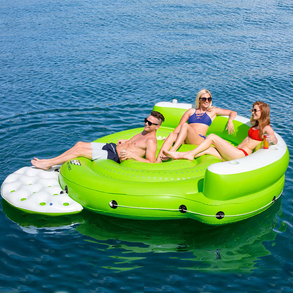 Få en underbar dag på badstranden tillsammans med dina vänner med denna enorma badmadrass! En riktigt stor uppblåsbar badmadrass för fem personer som är försedd med ett brett, bekvämt ryggstöd och praktiska mugghållare som gör det enkelt att ta med sig god dryck på vattnet. Helt enkelt en riktigt rolig badmadrass som blir en helt perfekt badleksak för varje strandbesök!