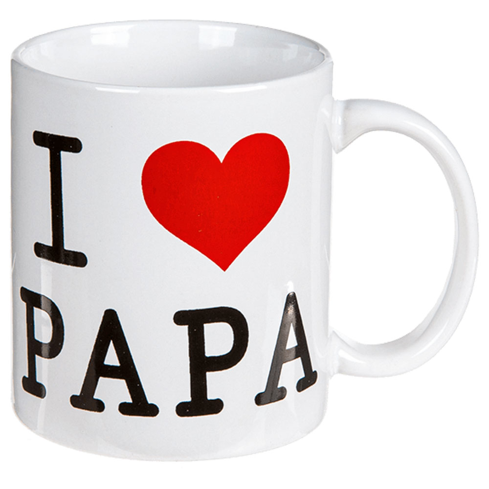 I Love Papa Mugg omfattar en vit mugg med texten "I Love Papa".