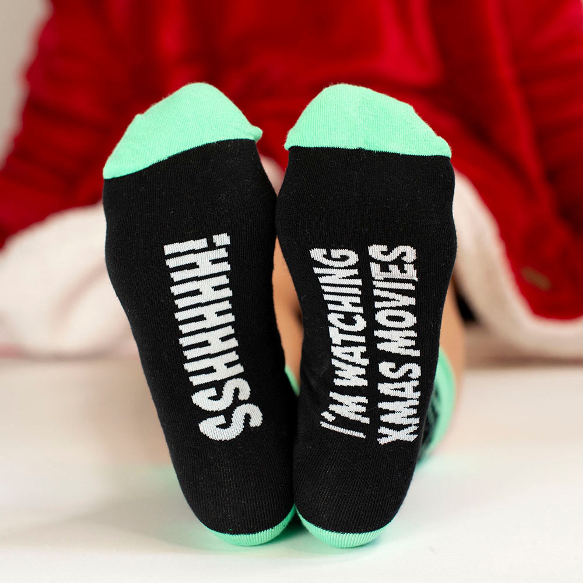 Shhh! Jag kollar på julfilmer! Det är otroligt viktigt att i dessa jultider visa extra hänsyn för dom som lägger ner sin själ för att hinna kolla igenom mysiga julfilmer. Inga konstigheter att visa upp budskapet med ett par strumpor!