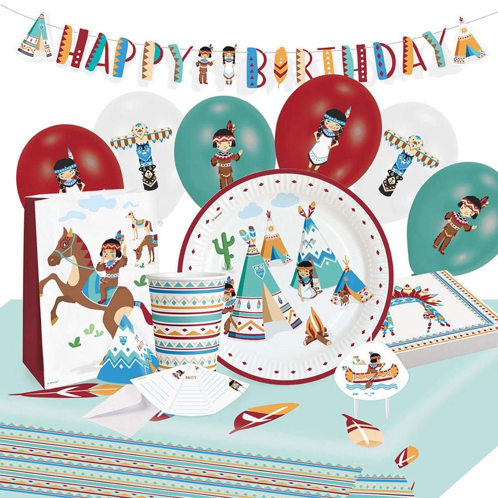 Om du verkligen vill fira din födelsedag riktigt ordentligt så borde du fira som en indian och det kan du enkelt göra med detta färdiga kalaspaket. Ett praktiskt kalas kit med dekorationer och tillbehör i roligt indiantema. Med dessa prylar kan du enkelt skapa snygga festpyntningar och även en matchande kalas dukning. Komplettera gärna detta kalas kit med exempelvis roliga indian utklädnader för ett komplett indiankalas.