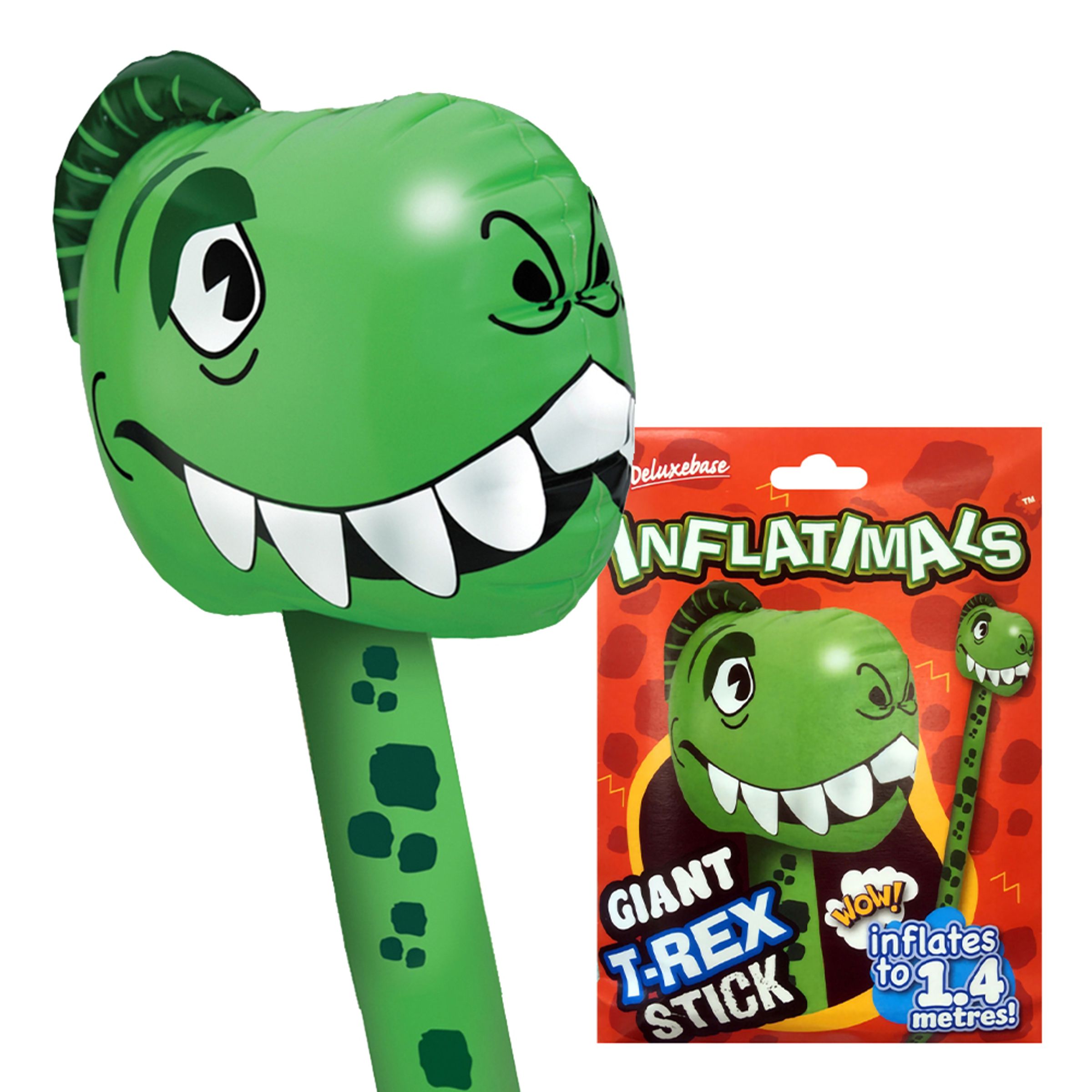 Inflatimals Uppblåsbar T-Rex är en stor uppblåsbar T-Rex på pinne som mäter hela 140 centimeter lång när den är uppblåst. Den är tillverkad av slitstarkt material som gör att den tål massor av lek och skoj, vilket gör den klockren som rolig barnpresent. Perfekt till barnkalaset med dinosaurietema!