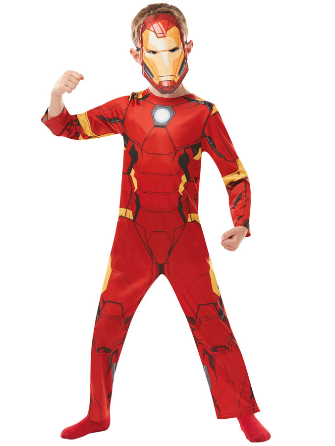 Att klä ut sig till den tuffa Avengers superhjälten Iron Man blir riktigt enkelt med en häftig dräkt som denna! En tuff Iron Man maskeraddräkt med matchande mask som är en perfekt utklädnad till maskerader, superhjälte kalas, Halloween och fartfyllda Avengers lekar.