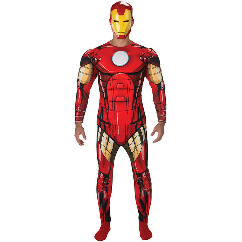 Iron Man Maskeraddräkt består av en röd muskelvadderad helkroppsoverall med Iron Man-detaljer tryckta framtill. Det ingår dessutom en matchande Iron Man mask tillverkad av plast som enkelt fästs runt huvudet med hjälp av ett elastiskt band.