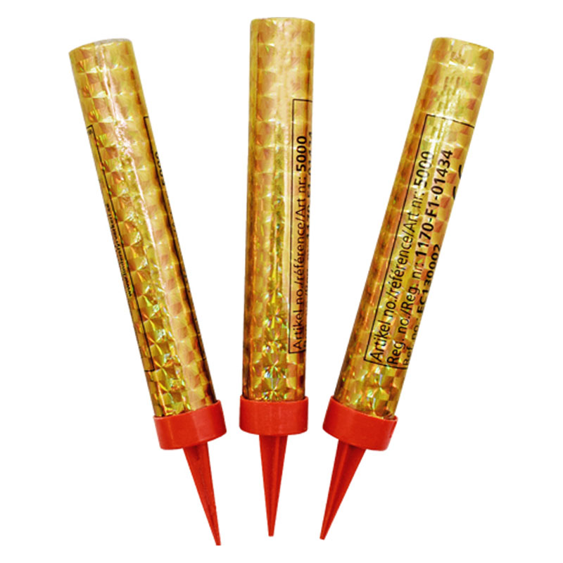 Isfackla Guld 3-pack består av 3 stycken isfacklor dekorerade med snyggt guldmönstrat papper.