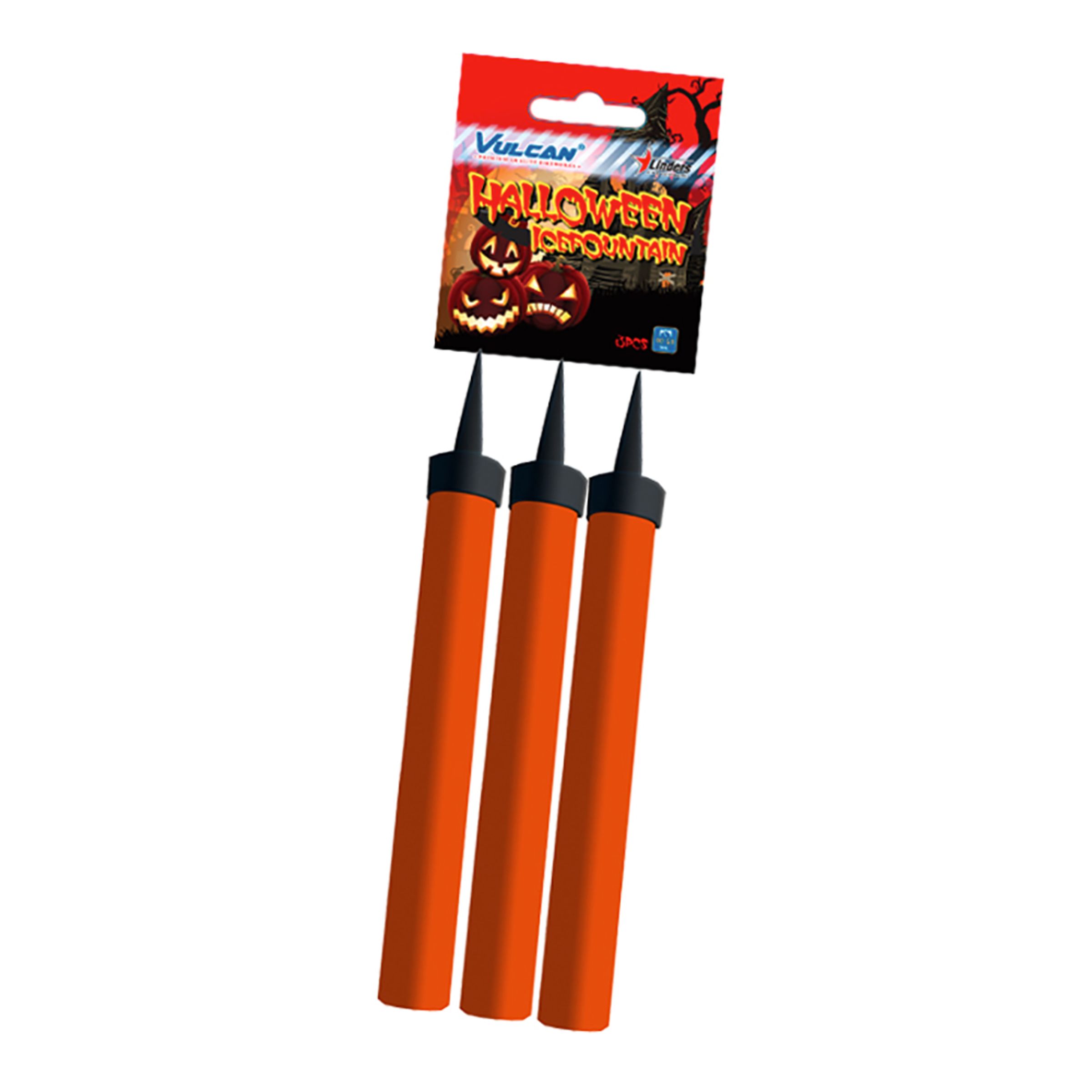 Isfackla Halloween levereras som ett 3-pack och har en brinntid på cirka 30 sekunder. Medföljer gör dessutom en hållare för varje fackla som gör det enkelt att fästa dem i mat eller dylikt.
