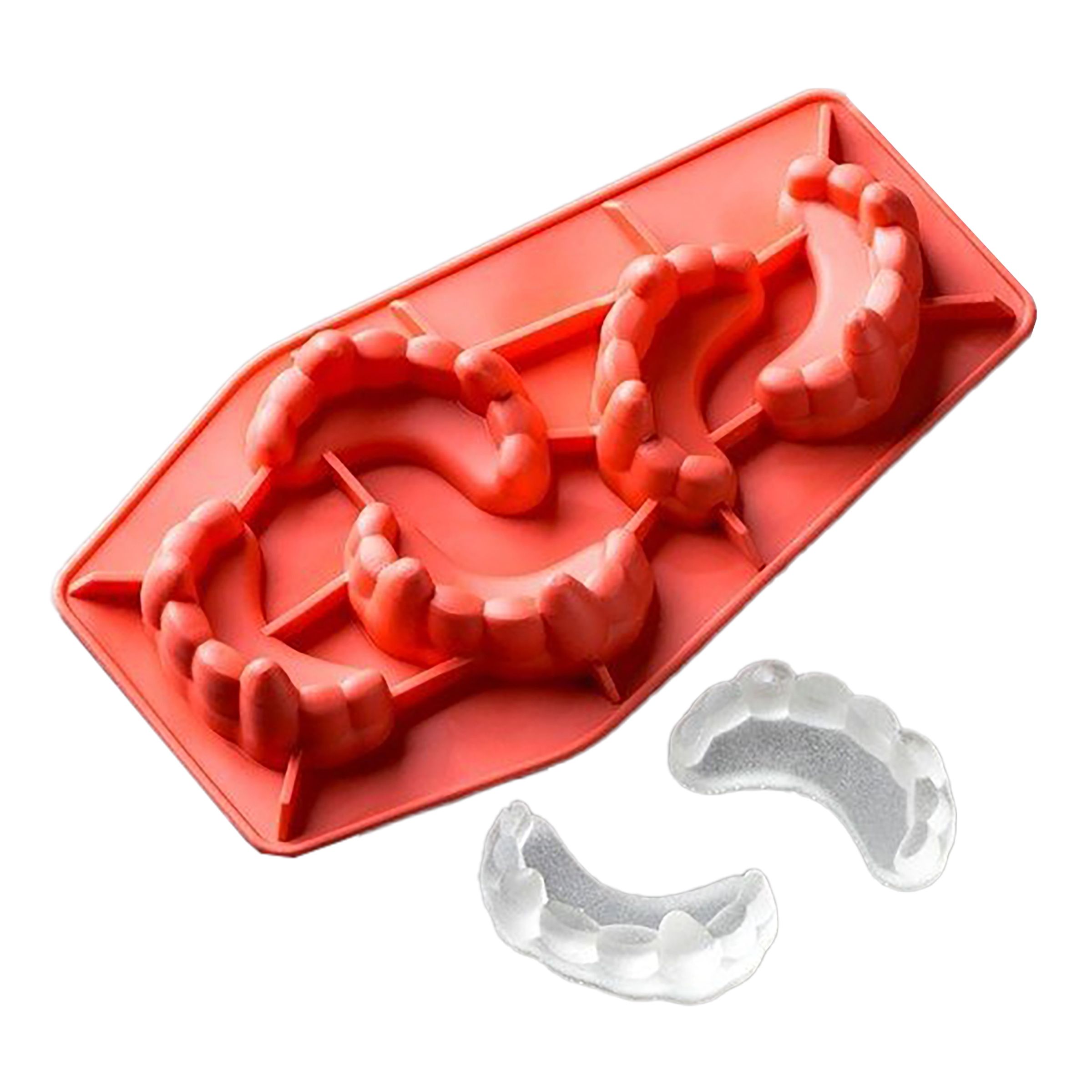 Om självaste Greve Dracula hade lidit av gnisslande tänder och efter sin dagliga dvala vaknat upp för att avlägsna bettskenan så hade det nog sett ut som dessa isbitar – men tänk inte på det. Använd för att piffa till Halloween-drinken!
