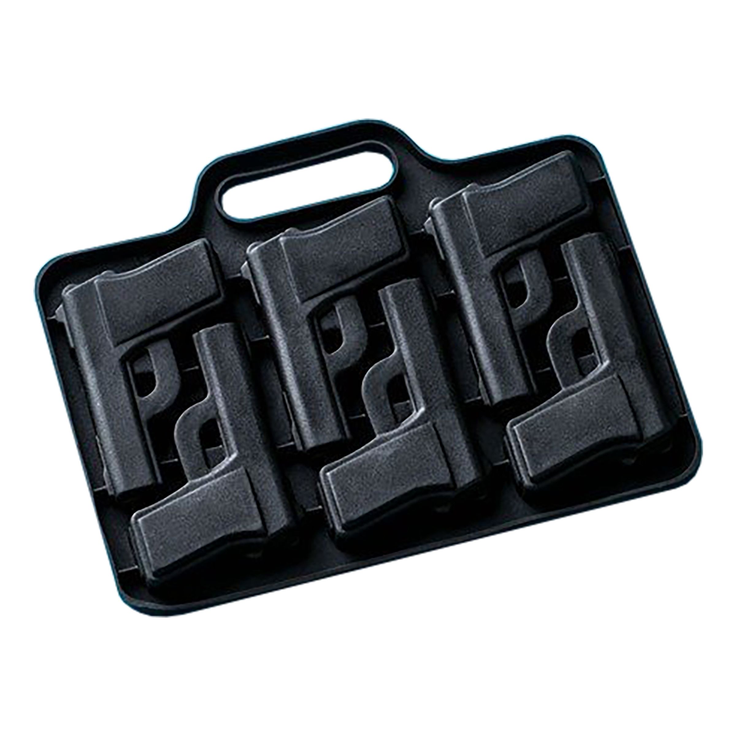 Isform Pistol kommer i form av en svart väska med handtag och har plats för totalt sex stycken isbitar formade som pistoler. Fyll med vatten, stoppa in i frysen, bryt ut isbitarna och dekorera drinkarna med riktigt pang–snygga isbitar till festen!