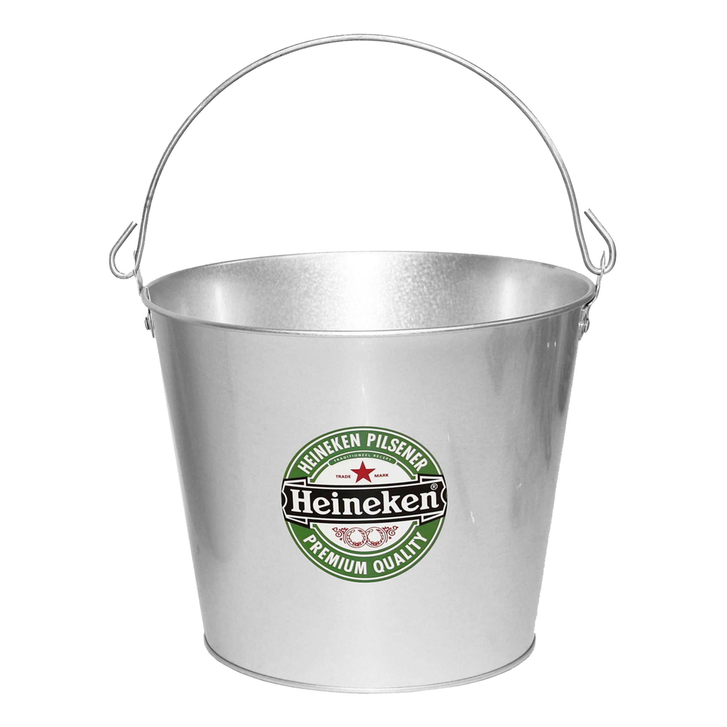 Ölhink Heineken mäter 23 x 17 x 18 cm och är tillverkad av metall. Hinken pryds av Heinekens logotyp och är utrustad med handtag för smidig transport.