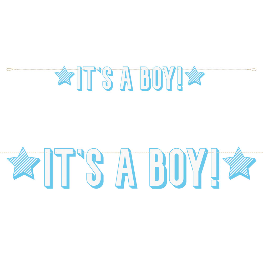 Dekorera baby-shower party och gender-reveal fest med en härlig "It's a boy" girlang, ett måste för alla som väntar på en liten bebis kille. Med denna tema girlang fixar ni enkelt snygg dekoration till firandet, perfekt tillbehör för en speciell baby-shower och gender-reveal.