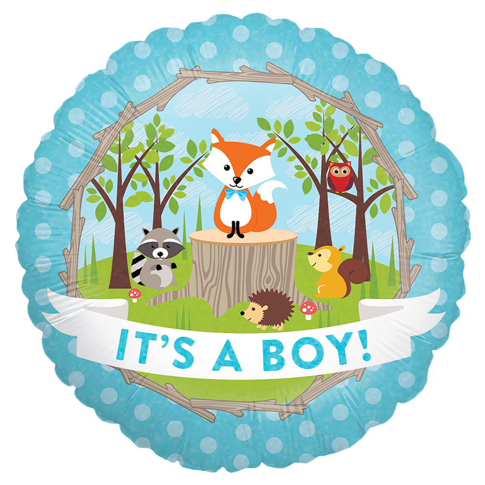 Det kan vara kul att berätta bebisens kön på babyshower och med denna fina ballong blir det också festligt! Söt folieballong med texten "It's A Boy!" och gulligt motiv av skogsdjur som avslöjar att det är en liten pojke på väg till världen. Det blir enkelt att få till en fin babyshower dekoration och den kan även fint matchas med andra tillbehör. Kort sagt perfekt för alla som väntar en liten pojke och vill fira det med en härligt babyshower!