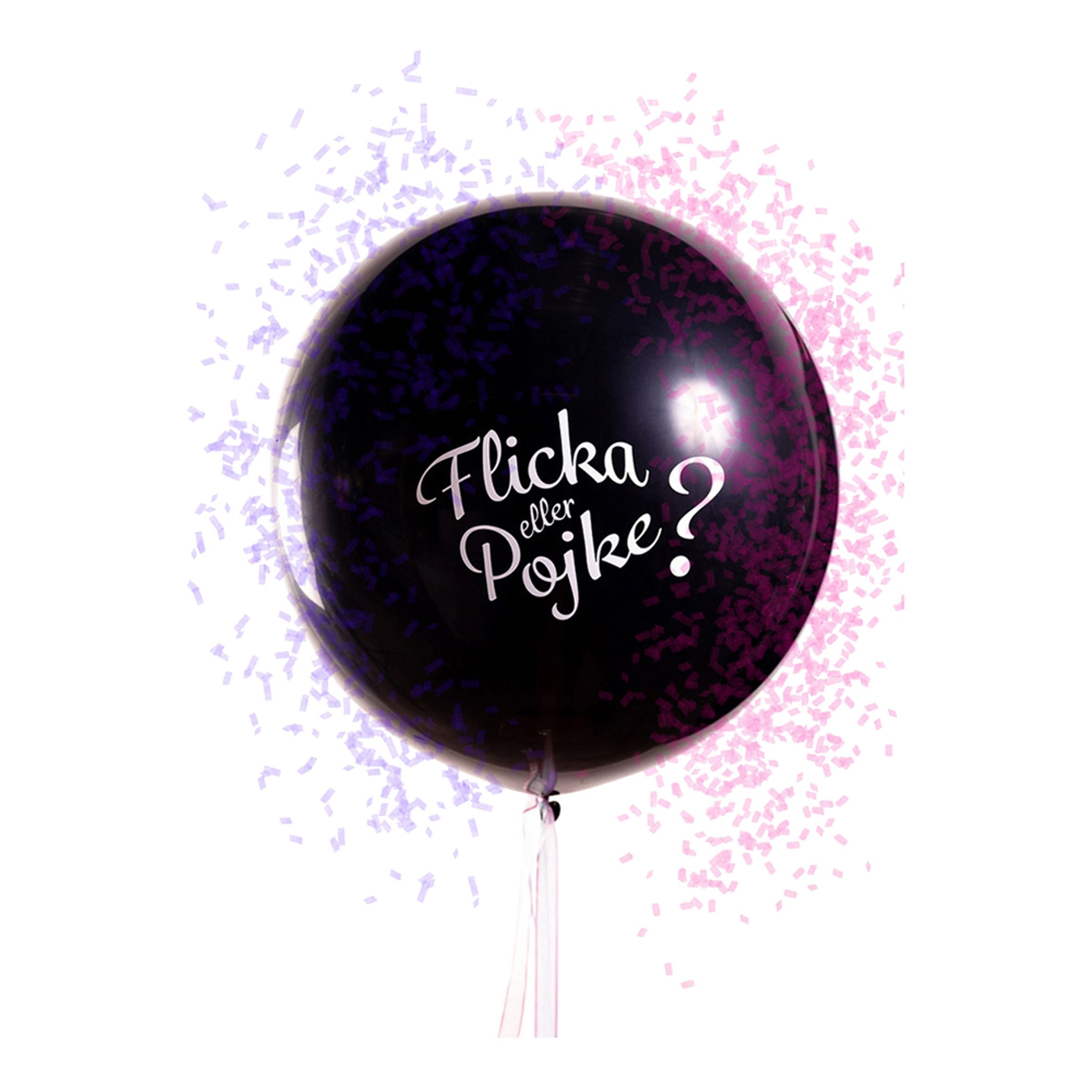 Är det en flicka eller en pojke? Med denna superstora latexballong avslöjar du det kommande barnets kön på ett roligt och nytänkande sätt! Du kan exempelvis fylla ballongen med rosa konfetti om det är en tjej, eller blått konfetti om det är en pojke. Sedan smäller du bara av ballongen när alla sitter där fyllda av förväntan!