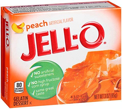 Jell-O är en amerikansk gelédessert som bereds genom att blanda det smaksatta gelatinpulvret med enbart vatten. Jell-O har en härlig konsistens som uppskattas av både stora och små. Denna med smak av persika är riktigt somrig och oerhört god.