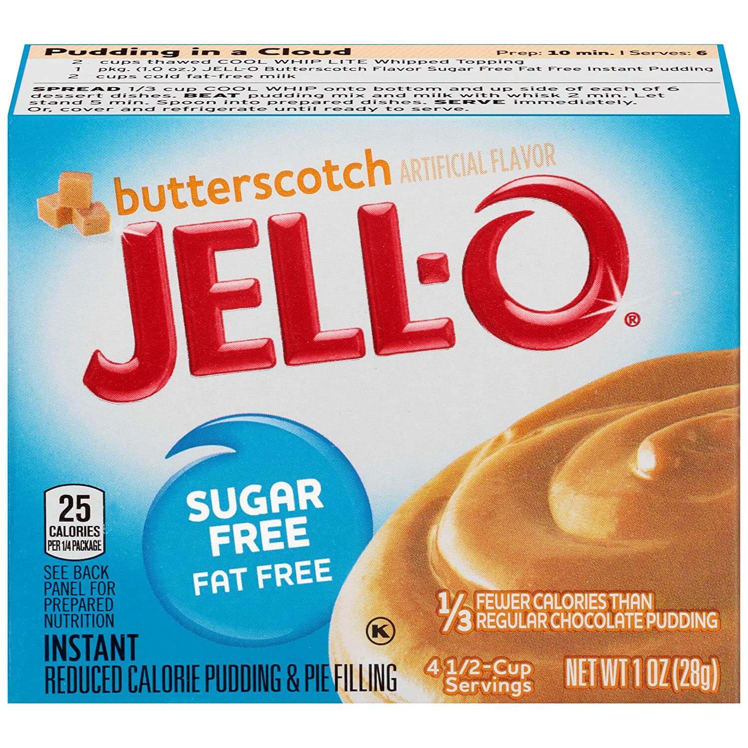 Jell-O sockerfria butterscotchpudding smakar som knäck och är utsökt oavsett om du njuter av den som den är eller använder den som en ingrediens i dina dessertrecept.