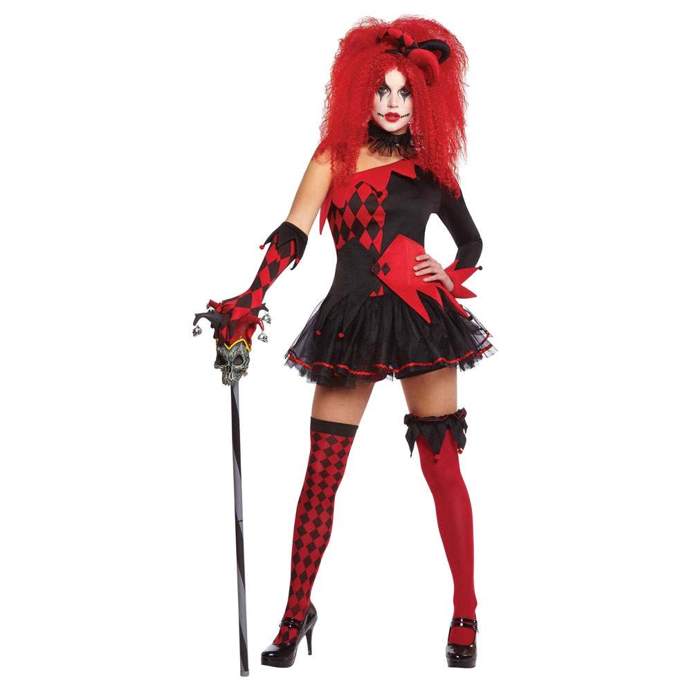 Vanligtvis brukar en gycklare få alla att skratta högt men med denna gycklare dräkt kommer skratten snabbt att tystna och istället övergå till skrämda rop. En läskig gycklare kostym som samtidigt gör dig riktigt snygg. Gycklare dräkten kommer helt komplett med klänning, hatt, knästrumpor och andra tillbehör som ger det där lilla extra till din utstyrsel. Allt du behöver bidra med själv är ett par skor, en passande frisyr och en läskig sminkning så är du klar för både maskerad och halloween!