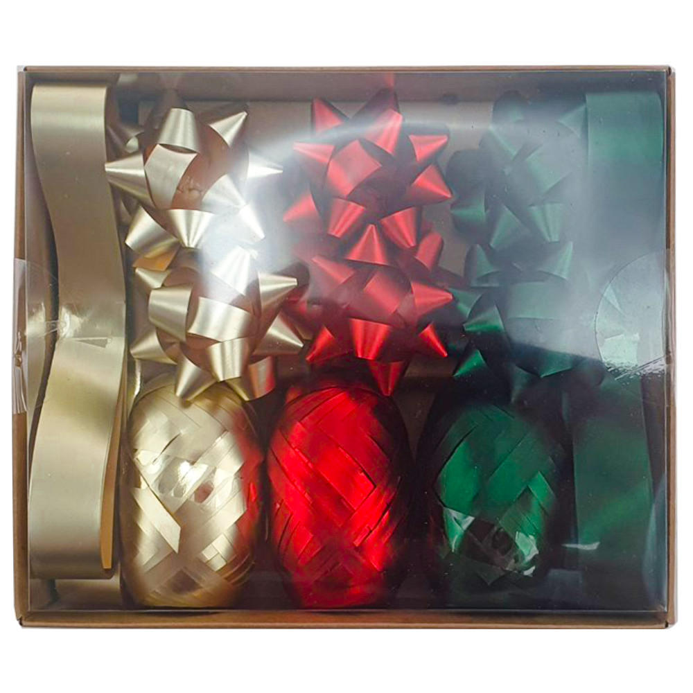 Sätt ett snyggt avslut på din inslagning av julklappar, paket och presenter med fina breda presentband, presentsnöre och rosetter i matt metallic och jul färger som rött, grönt och guld. Detta är ett perfekt presentdekoration kit för dig som vill ha variation på din paketdekoration.