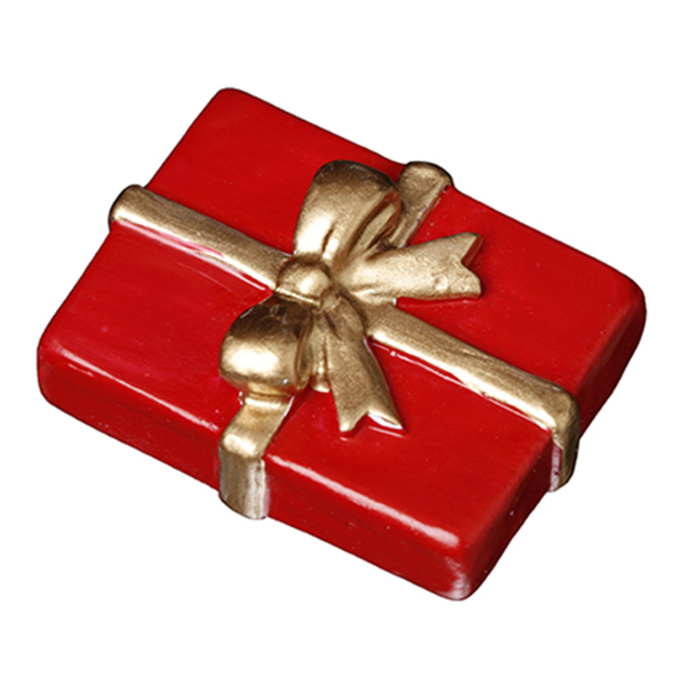 Juldekoration Julklapp inkluderar två röda julklappar med guldfärgade rosetter. Julklappen är tillverkad i plast och är 4 x 3 cm stor.